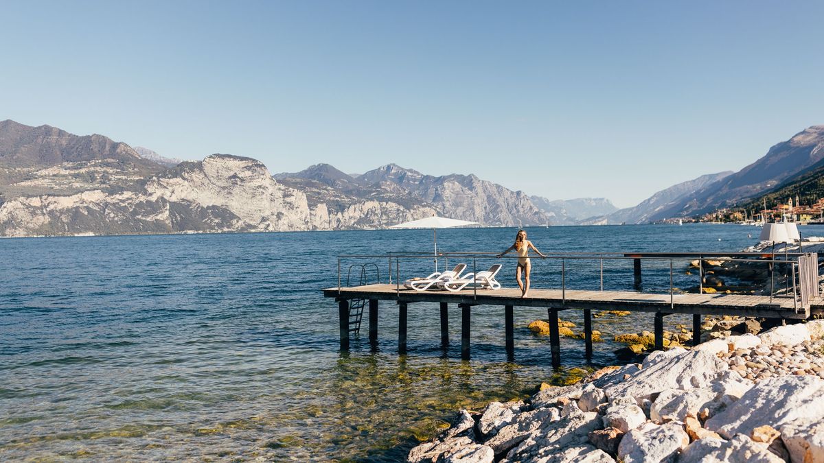 Relaxen, genießen & flanieren am Gardasee. Bei Sonnenuntergang an romantischen Häfen spazieren, durch die wunderschönen Städtchen und Fischerdörfer flanieren und sich von italienischer Lebensart inspirieren lassen: zum Entspannen an unserem Privatstrand mit Bade-Steg, zum prickelnden Relaxen in unserem Whirlpool im Hotelgarten, zu feiner mediterraner Küche – serviert auf unserer Sonnenterrasse mit grandiosem Seeblick.