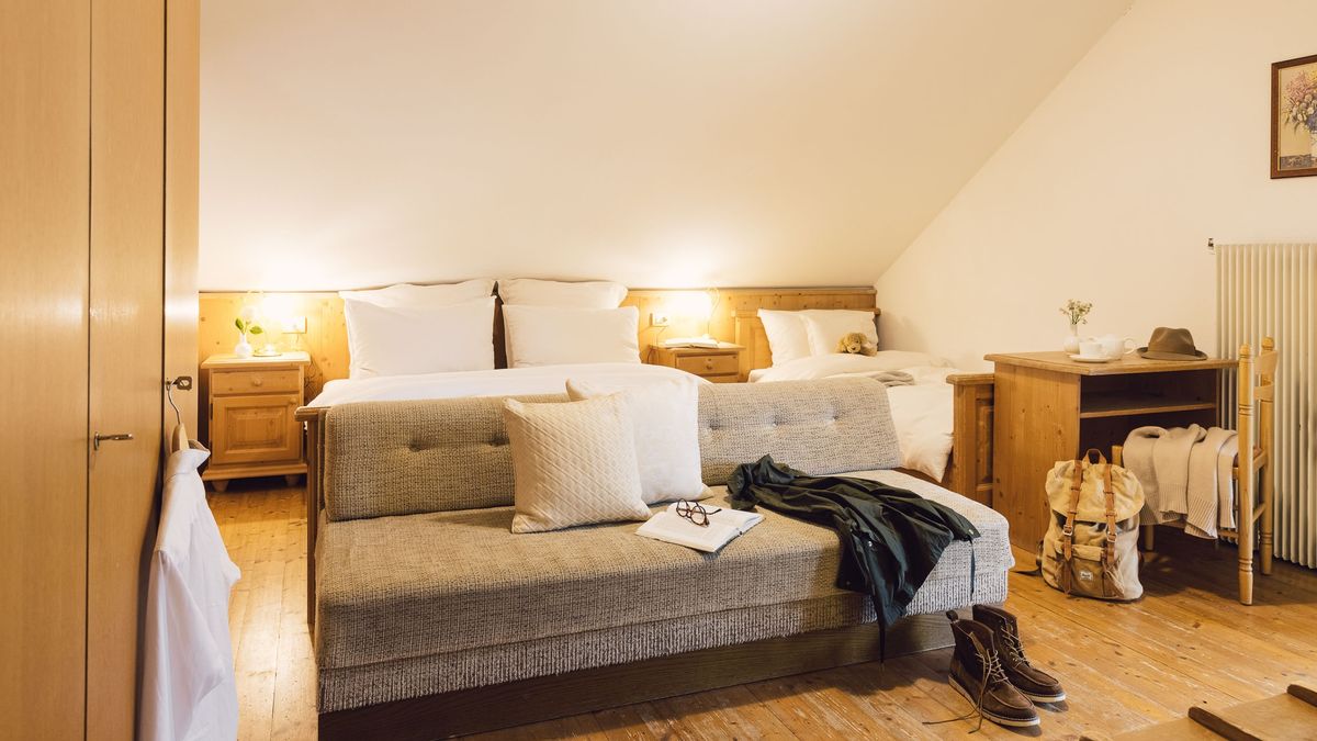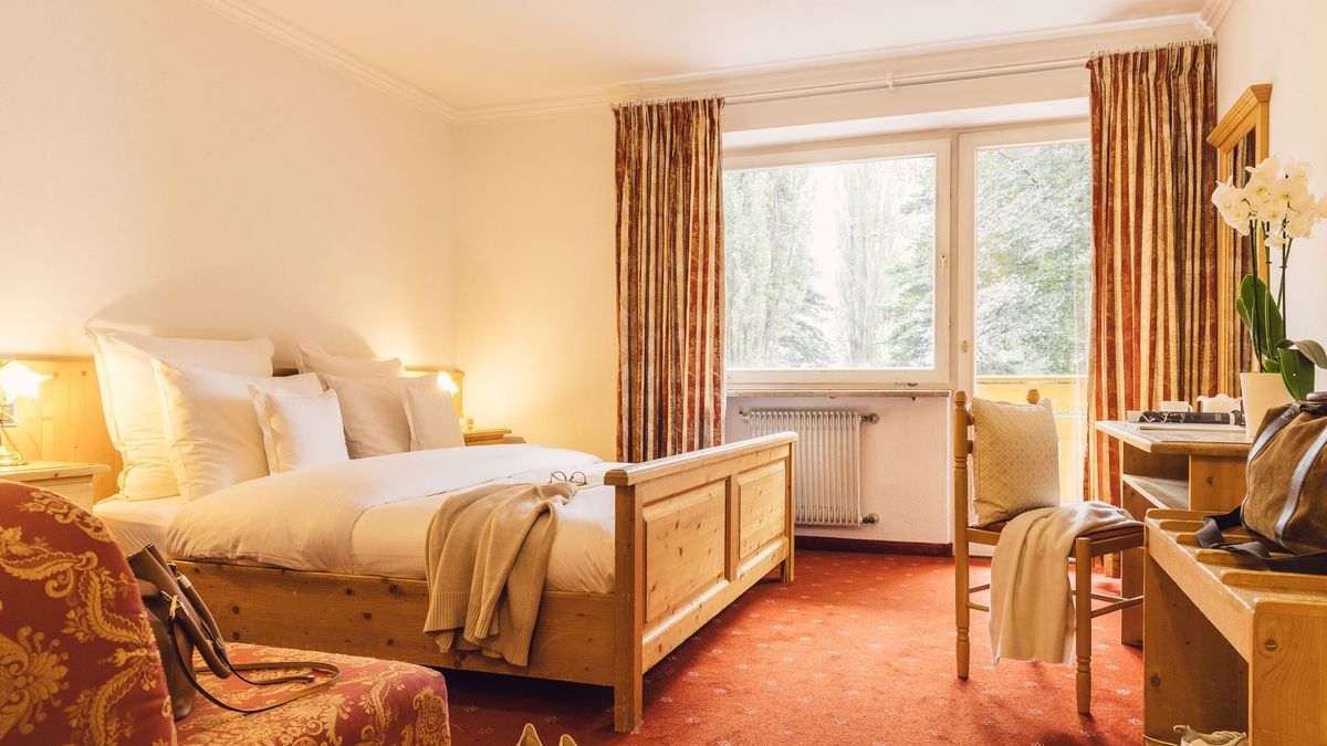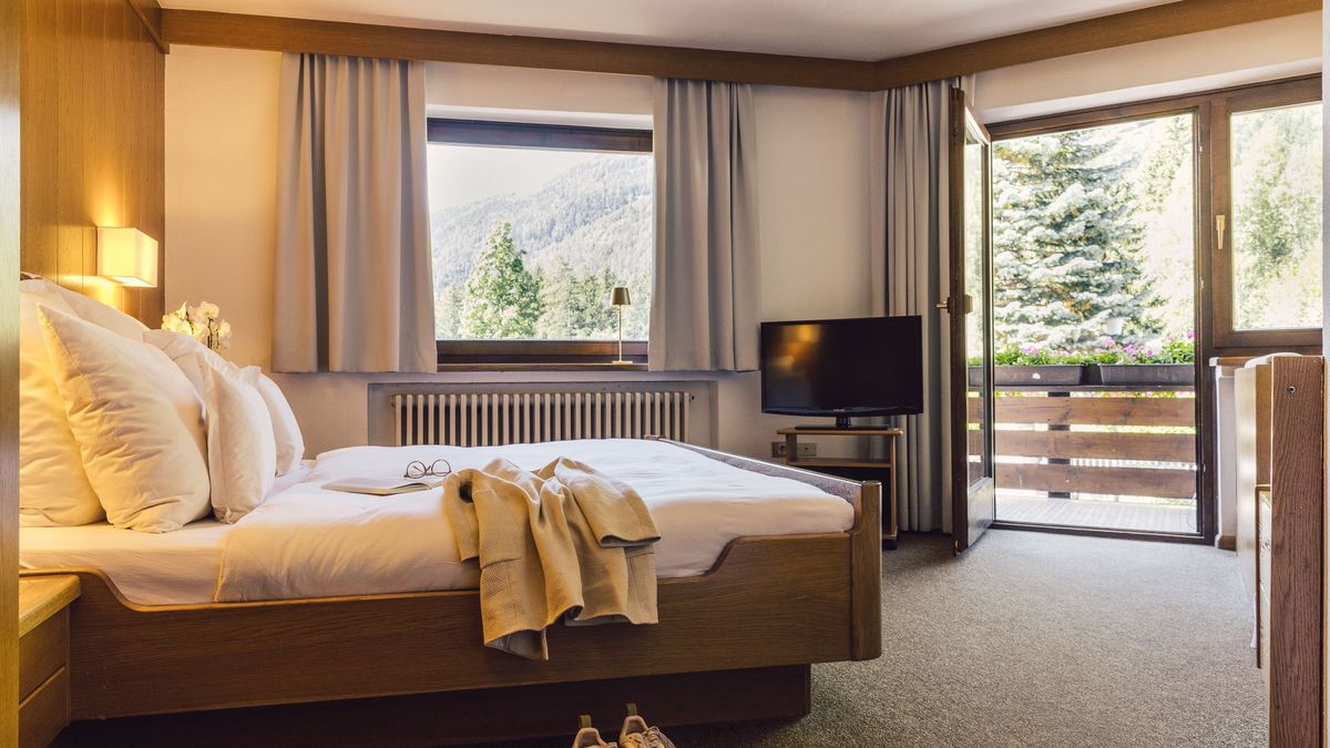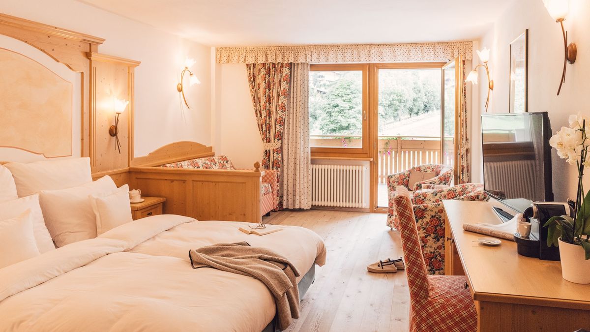 Zimmer & Suiten: Zimmer in zwölf Kategorien mit eleganter Holzausstattung vom Südtiroler Tischler. Extras wie Himmelbetten, Naturholz-Luxus oder Whirlpool nach Kategorie. Alle Zimmer & Suiten sind mit kostenfreiem WLAN & LAN, diversen Flat-Screen-TVs und Telefonen, Radio, Minibar, Kaffeemaschine, Safe, individueller Temperaturregulierung in jedem Zimmer, Rollos, Haarfön, Personenwaage, Schminkspiegel, kuscheligen Bademänteln und Slippern ausgestattet.