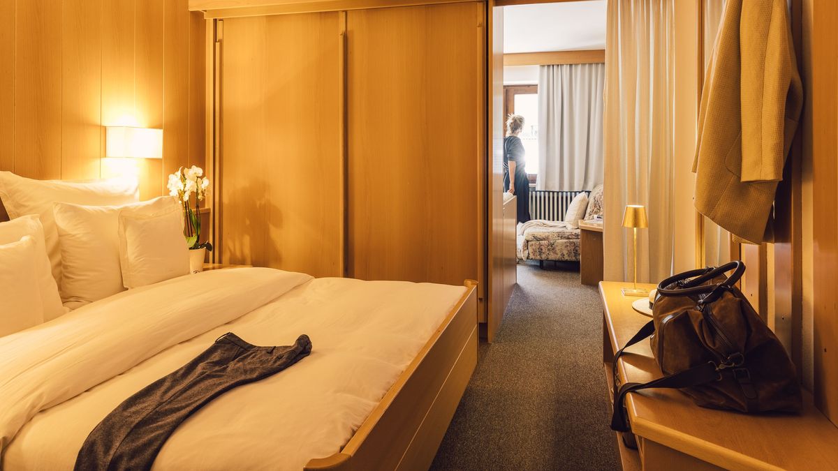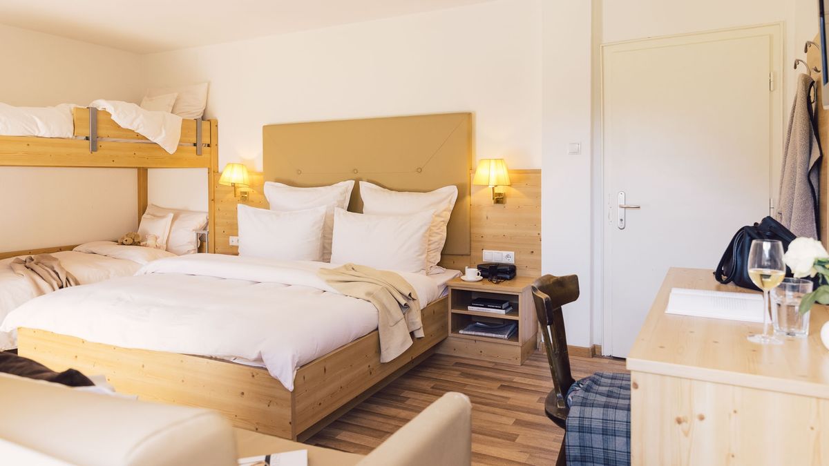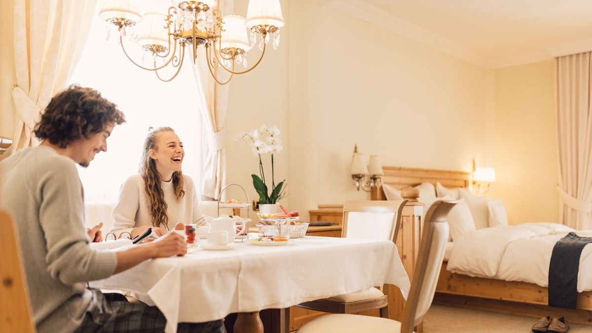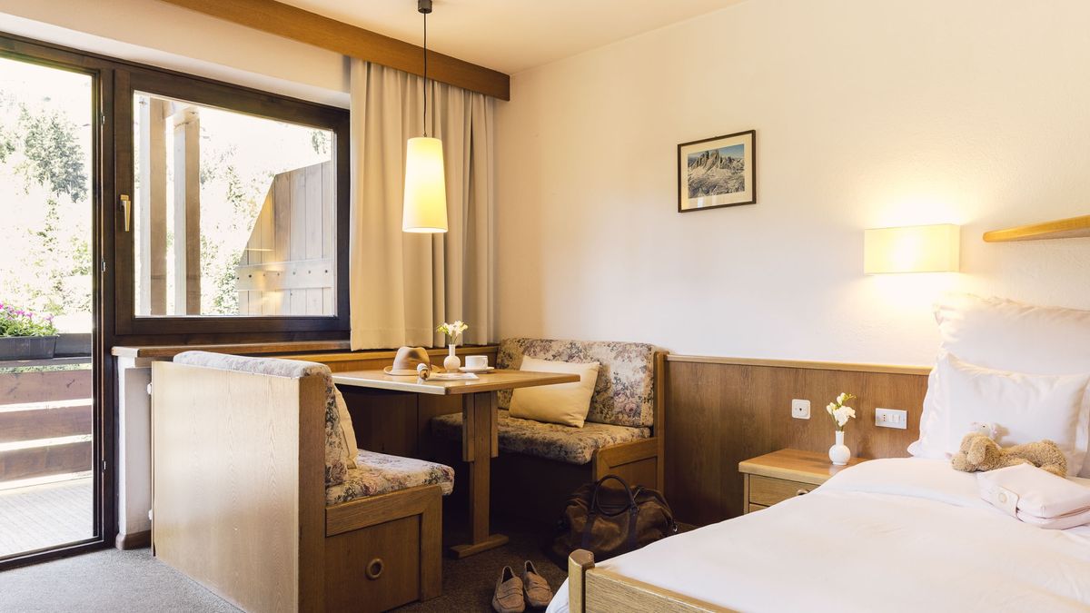 Zimmer & Suiten: Zimmer in zwölf Kategorien mit eleganter Holzausstattung vom Südtiroler Tischler. Extras wie Himmelbetten, Naturholz-Luxus oder Whirlpool nach Kategorie. Alle Zimmer & Suiten sind mit kostenfreiem WLAN & LAN, diversen Flat-Screen-TVs und Telefonen, Radio, Minibar, Kaffeemaschine, Safe, individueller Temperaturregulierung in jedem Zimmer, Rollos, Haarfön, Personenwaage, Schminkspiegel, kuscheligen Bademänteln und Slippern ausgestattet.